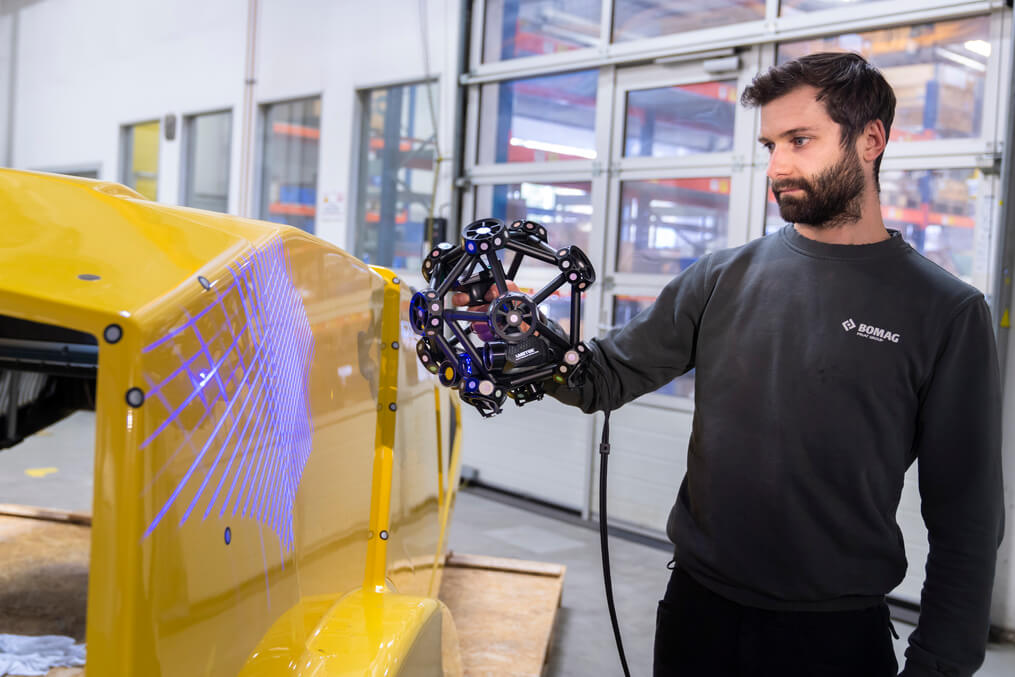 Als innovatives Unternehmen, setzt BOMAG auf kontinuierliche Weiterentwicklung und Modernisierung der Produktion. Der Baumaschinenhersteller arbeitet seit Jahren im Bereich 3D-Messtechnik mit Portalmessmaschinen und Messarmen. Ergänzend dazu suchte man nach einem Scan-Messgerät zur unkomplizierten, flexiblen und berührungslosen Messung von Freiformflächen wie z.B. von Guss- oder Kunststoffteile. Auch sollte das Messystem mobil einsetzbar sein, um so große Bauteile scannen und höchste Qualitätsstandards gewährleisten zu können.