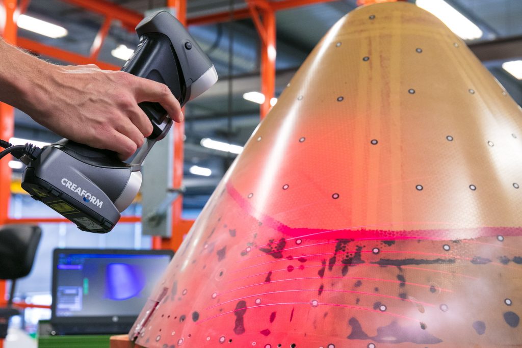 Zur Reparatur oben genannter Bauteile kommen Klebeschalen aus Kohle- oder Glasfaser zum Einsatz, bei denen Form und Kontur regelmäßig überprüft werden müssen. Der Fertigungsprozess findet unter Einfluss von Druck und Temperatur in einem Autoklav statt, so dass eine Ausdehnung des Materials die Folge sein kann. Diese Ausdehnung wird mit Hilfe von regelmäßig wiederkehrenden Scans ermittelt. Es handelt sich hierbei also nicht um ein einmaliges Projekt, sondern um eine regelmäßige Maßnahme, zur Sicherstellung von Qualitätsstandards.