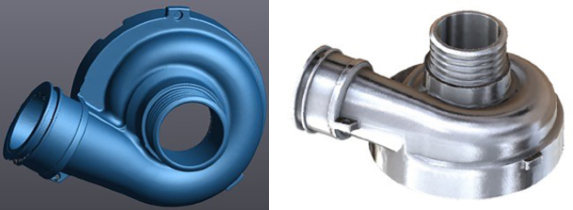 Mapeex wurde beauftragt für einen Kunden den Wasserfluss in einem Wasserpumpengehäuse zu untersuchen. Da der Pumpenhersteller nicht über das CAD-Modell des Gehäuses verfügte, bestand die einzige Möglichkeit in der Erstellung einer transparenten Version des Originalteils.