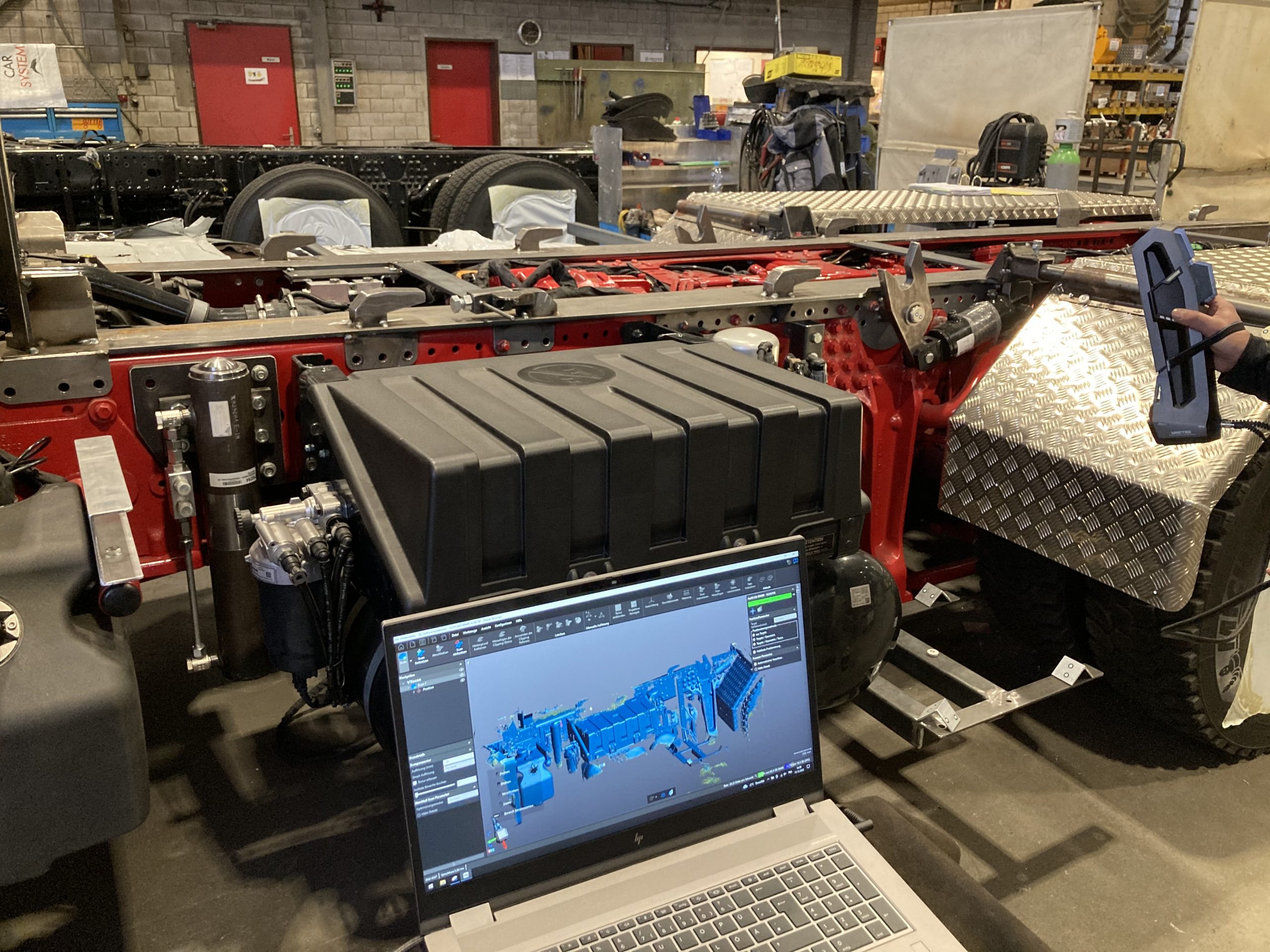Sutter ist oft mit großen Scanbereichen wie z.B. LKW-Fahrgestellzonen konfrontiert, bei denen der Abstand zwischen den einzelnen Komponenten zwar wichtig ist, die Messgenauigkeit jedoch hoch bleiben muss. Daher war die zentrale Anforderung bei der Anschaffung die Genauigkeit des Messsystems.