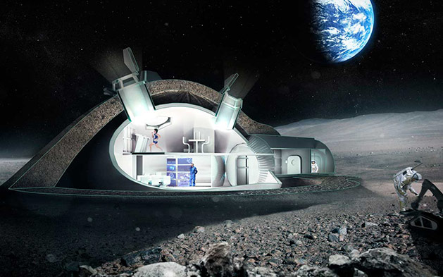 London-based architecture firm Foster + Partners is also part of the project, and their own participation is a very intriguing one… They imagined a lunar base for four people, using 3D printing techniques and regolith, or lunar soil, as a material.