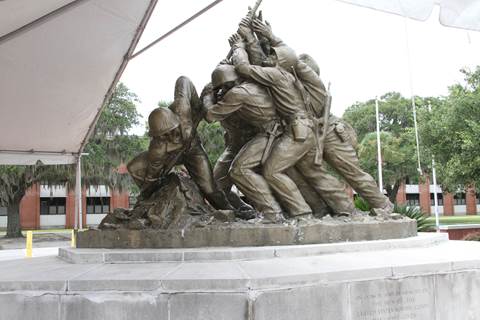The statue, located at the Marine Corps Recruit Depot, is actually a smaller replica of the statue of Felix de Weldon, located close to Arlington National Cemetery in Virginia. A few replicas are found throughout the United States as well. These are tributes to all Marine Corps military personnel that died fighting for their nation since 1775.