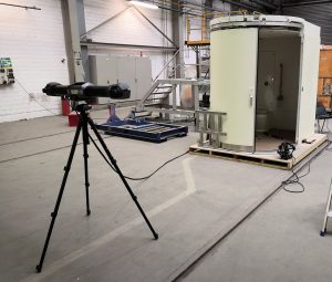 Creaform Engineering was mandated to assist in this project. With the MetraSCAN 3D Elite handheld optical CMM 3D scanner and Polyworks software, a complete toilet cabin in the warehouse was first digitized to document the condition of the door when opened and closed, door drives and drill holes.