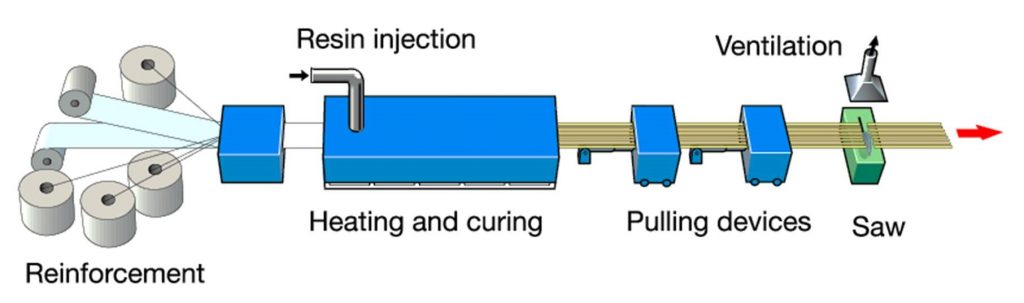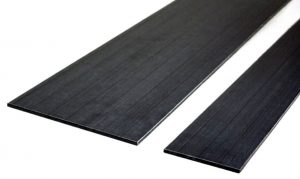 The carbon composite profiles are made through a process called pultrusion, in which carbon fibers are mixed with a matrix inside a large tool. The profiles are less than 1 cm high but +100 mm wide (there are several widths). A large pulling unit draws the profile out of the tool and onto a roller conveyer. Then, the thin profiles are coiled in large coils of several hundred meters.