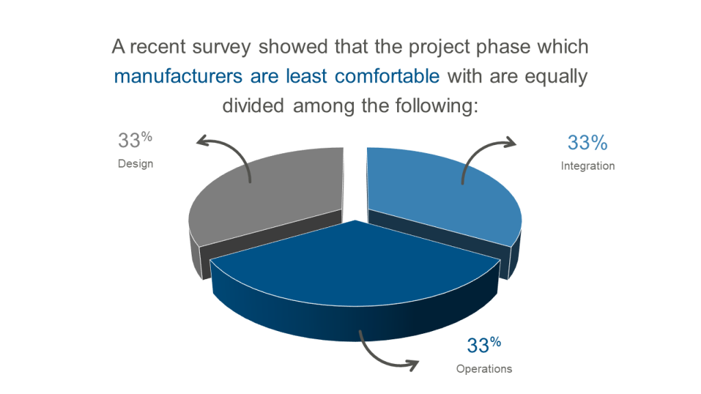 To find out more about how the lack of employees with skills and expertise in robotics prevents project development, we asked manufacturers which phase—design, integration, or operations—they were least comfortable with. Their answers, however, did not highlight a specific phase.
