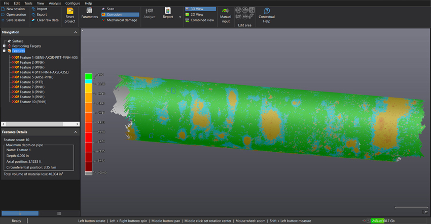 Now, NDT service companies, no matter what their market share or number of employees, can now offer full-length pipeline inspections and generate NDT and pipeline inspection reports for pipeline owners looking to better and more accurately assess their pipeline infrastructure. Creaform’s Pipecheck 5.0, the most comprehensive, yet easy-to-use and affordable NDT software on the market for pipeline integrity and pipeline safety assessment, now allows users to analyze corrosion and mechanical damage on pipes that measure up to 60 ft. Not only can they scan longer pipes but they can also crunch the numbers faster and provide more in-depth, accurate and repeatable pipeline inspection data analyses. Pipecheck 5.0 offers unprecedented agility for NDT inspection companies to beef up their services offer and cater to potential clients that were previously unattainable.