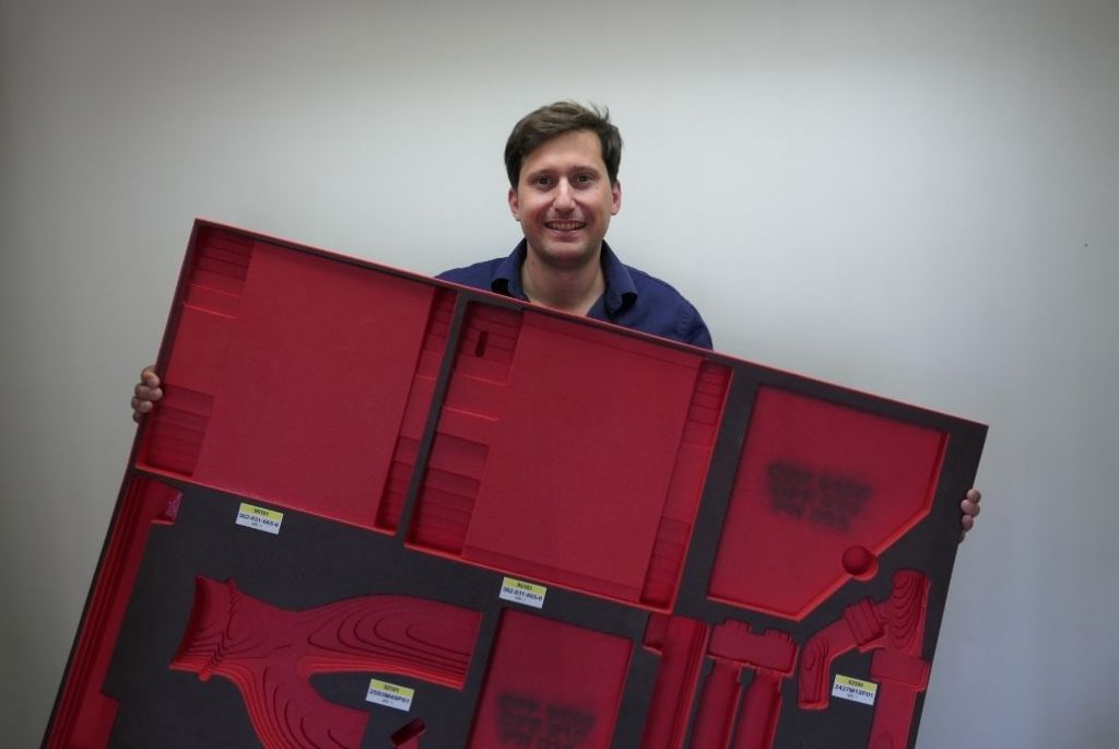 Finally, it was time to begin the various stages of production of the trays: SkinPack’s specific and patented membrane projection, high-precision CNC machining of the foam for the trays, and lastly the addition of identification, coding and counting components.