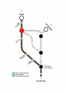 This workflow takes place entirely in CAD software, such as SolidWorks, AutoCAD, Inventor and CATIA, where the .stl CAD file is imported and the mesh is cleaned out and aligned. Once the scan is clean and aligned, measurements and features are extracted. Feature modeling can now begin to obtain the final CAD model.