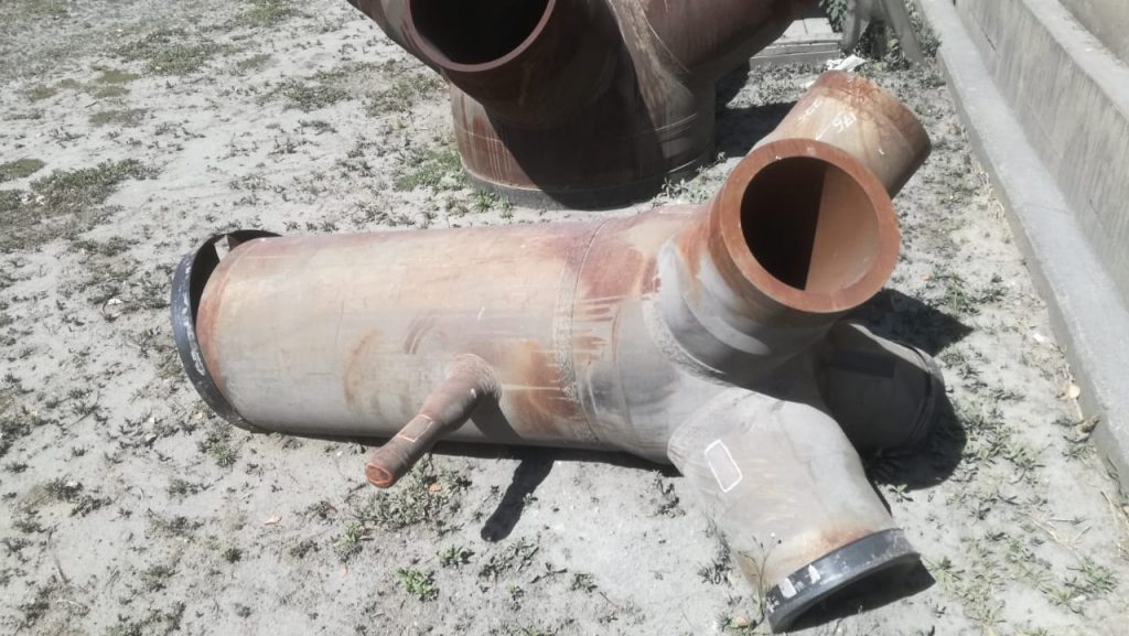 The design process entailed creating a 3D model of the spherical headers, from which 2D manufacturing drawings were created. From these drawings, the headers were then fabricated at a manufacturing facility. The manufacturing tolerance was ±0.5 mm. It was approximately 1700 mm long, had an outside diameter of 600 mm, and a total estimated mass of 1414 kg.