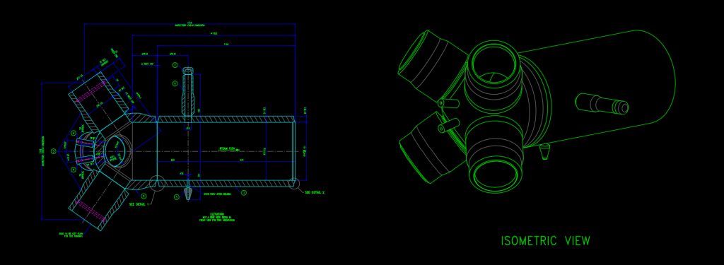 - Aligning the manufactured spherical header with the required interface points on site at the client’s facility. The header had a total of five interface points that had to be aligned to within a very fine tolerance.