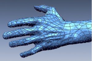 Rapidform, from the company 3D-Systems, is a software package that combines 3D scan data processing and parametric volume modeling, in order to create intelligent CAD models from point clouds and polygon meshes [1]. This means that “watertight” STL models can be created, which is the requirement for the conversion of triangulated STL networks into a structure of NURBS surfaces (fig. 4), from which then, ultimately, volume modules of the software can be generated.