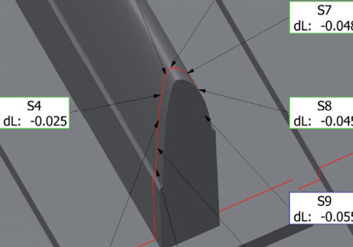 The dynamic alignment features not only make measurements extremely reliable in a factory environment, but also ensure autopositioning and autoalignment by using reflectors previously placed at predetermined locations. Thus, adjustment and verification times are reduced by a factor of two or more.For large pieces, the HandyPROBE's ability to increase its volume is particularly useful. When accuracy is crucial, it is possible to put reflectors on the equipment at locations previously measured with a laser tracker (periodic measurement, for example, annually) and the HandyPROBE handheld CMM re-aligns itself locally with the tracker's accuracy.