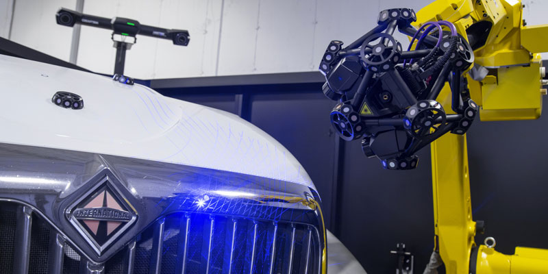 Spesso le aziende scelgono uno scanner ottico CMM 3D montato su robot adattato o una macchina per misurazioni a coordinate per scansione 3D autonoma per ottimizzare i cicli di produzione. Tranne per carico e scarico, non richiedono intervento umano e consentono ispezioni automatizzate con volumi molto alti.