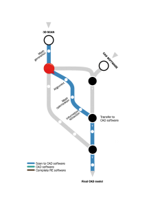 Questo flusso di lavoro inizia con il software di Reverse Engineering (RE), dove la mesh viene creata, modificata e allineata. Quando la scansione è pulita e allineata al sistema di coordinate desiderato, vengono ricavate le proprietà dimensionali. Le operazioni CAD (modellazione elementi), vengono eseguite nel software RE prima di trasferire il modello solido al software CAD e ottenere il modello CAD finale.