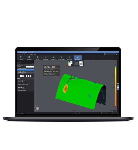 Aircraft 模块是首款专为航空器评估和机身表面凹痕损伤表征设计的 3D 可视化软件,能为 OEM(原始设备制造商)提供相关问题的完整数据,以便他们进行进一步分析。