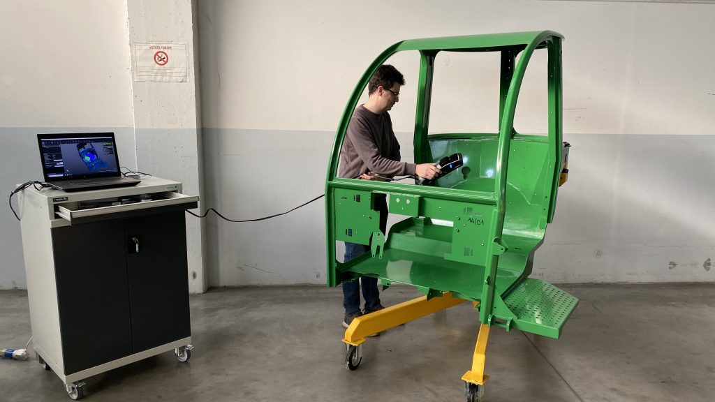 在将Creaform 的 3D 测量系统成功用于驾驶室之后,Monchiero 随后又将其用于检查机器的其他重要零部件。例如,可以更加简单轻松地检查轮轴和支架上的外倾角与其他倾角。因此,这实现了在组装前对组件进行干预,向供应商指出他们必须在哪里采取何种纠正措施。
