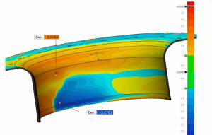 因此,客户可以轻松评估该数据的质量。更重要的是,他们还生成了一份 3D 质量报告,它以彩色显示了扫描数据与 CAD 模型的偏差。