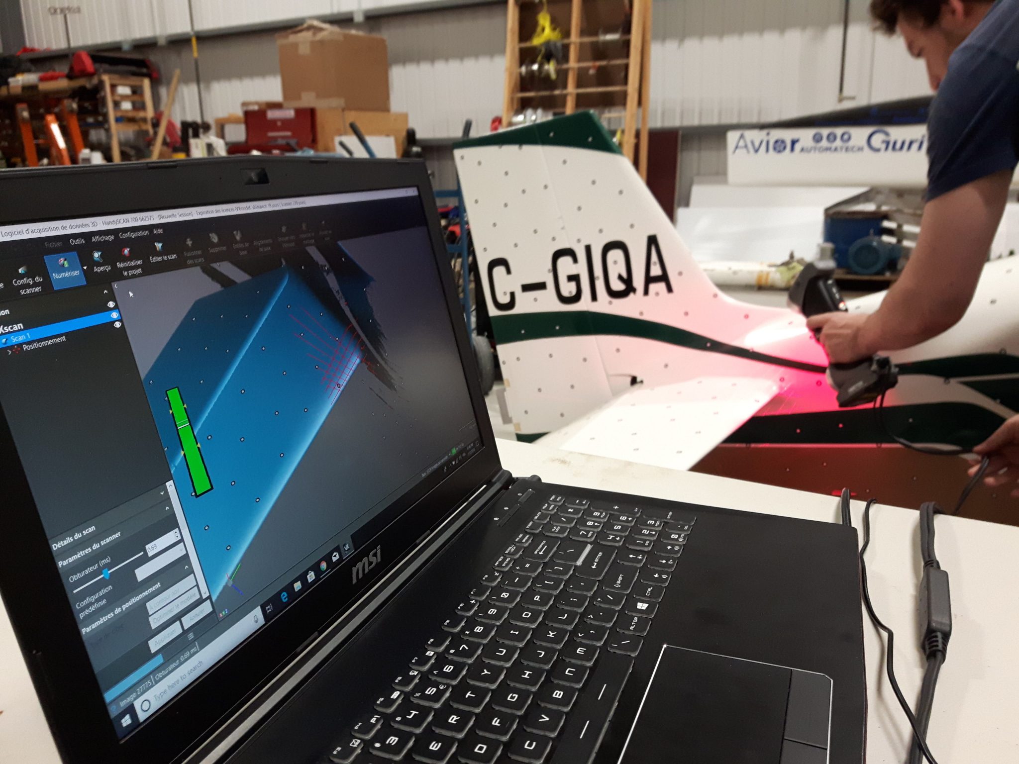 作为该项目的主要赞助商,Creaform 为 HERA 团队提供了一台 HandySCAN 3D 扫描仪,以便各团队成员可以进行各种尺寸检测,并对整个飞机进行逆向工程。“由于飞机的建造涉及不同人员参与,所以我们没有任何 3D 模型。此外,初始原型不一定完全对称,而且某些组件的实际尺寸与我们装配计划中的尺寸有所不同。”