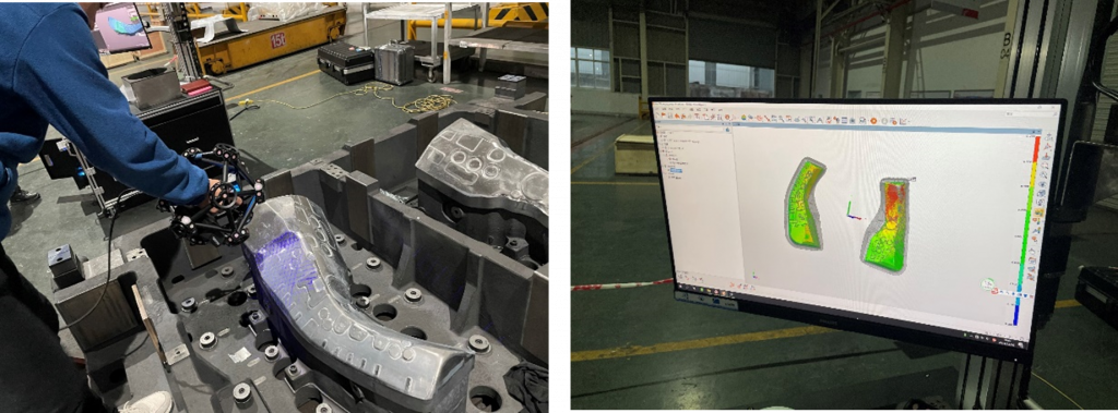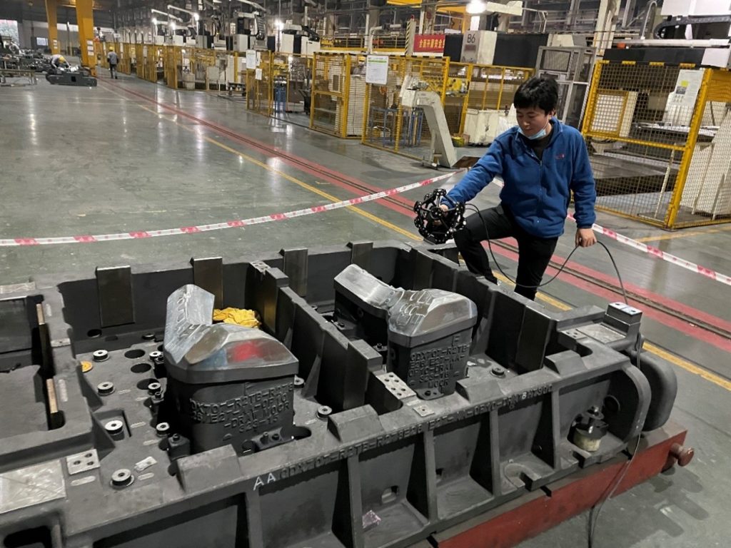 在该公司的冲压模具车间,由于每天需要生产大量的钣金件产品,模具的磨损不可避免。对于质量控制部门而言,为了保证产品质量,对模具的定期检测显得尤为重要。 而在冲压模具车间,由于环境十分复杂,噪声、震动等不确定因素随处可见,而汽车的钣金件产品又形状各异,非常复杂。这就对用于质量控制的检测设备的要求更为严苛,不仅对其精度有高要求,对其检测效率、复杂环境的适应能力的要求也不容小觑。